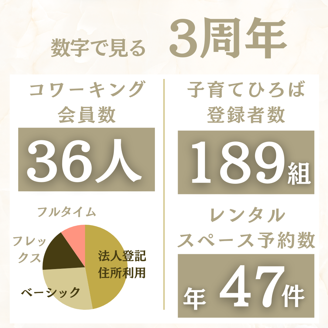 平日は、会員を中心とした方に利用いただいていて、小中高大学生の自習室から、テレワークの作業場所、セカンドキャリアの仕事場など、多様な目的で使っていただいたいます。また、36名いる会員のうち、半数は法人登記や住所利用目的で、創業支援にもつながっていると感じています。